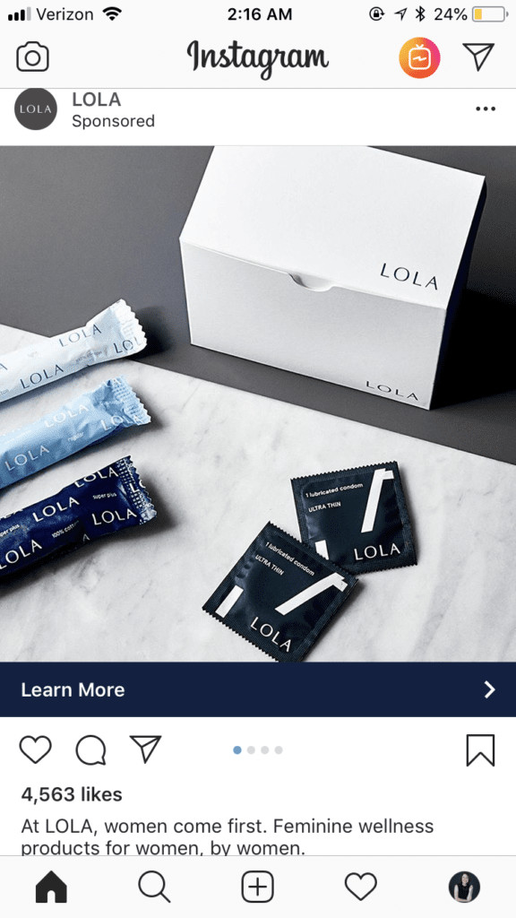 此类广告将出现在用户的动态消息中,可以包括图像、轮播广告或视频。当用户在广告上停留的时间足够长时,用户行动号召(CTA)按钮会亮起,鼓励他们点击。这种广告是从动态消息内容中获取可点击链接(购物类广告除外)的唯一方法。Instagram动态消息广告位的投放成本确实高于平均水平。